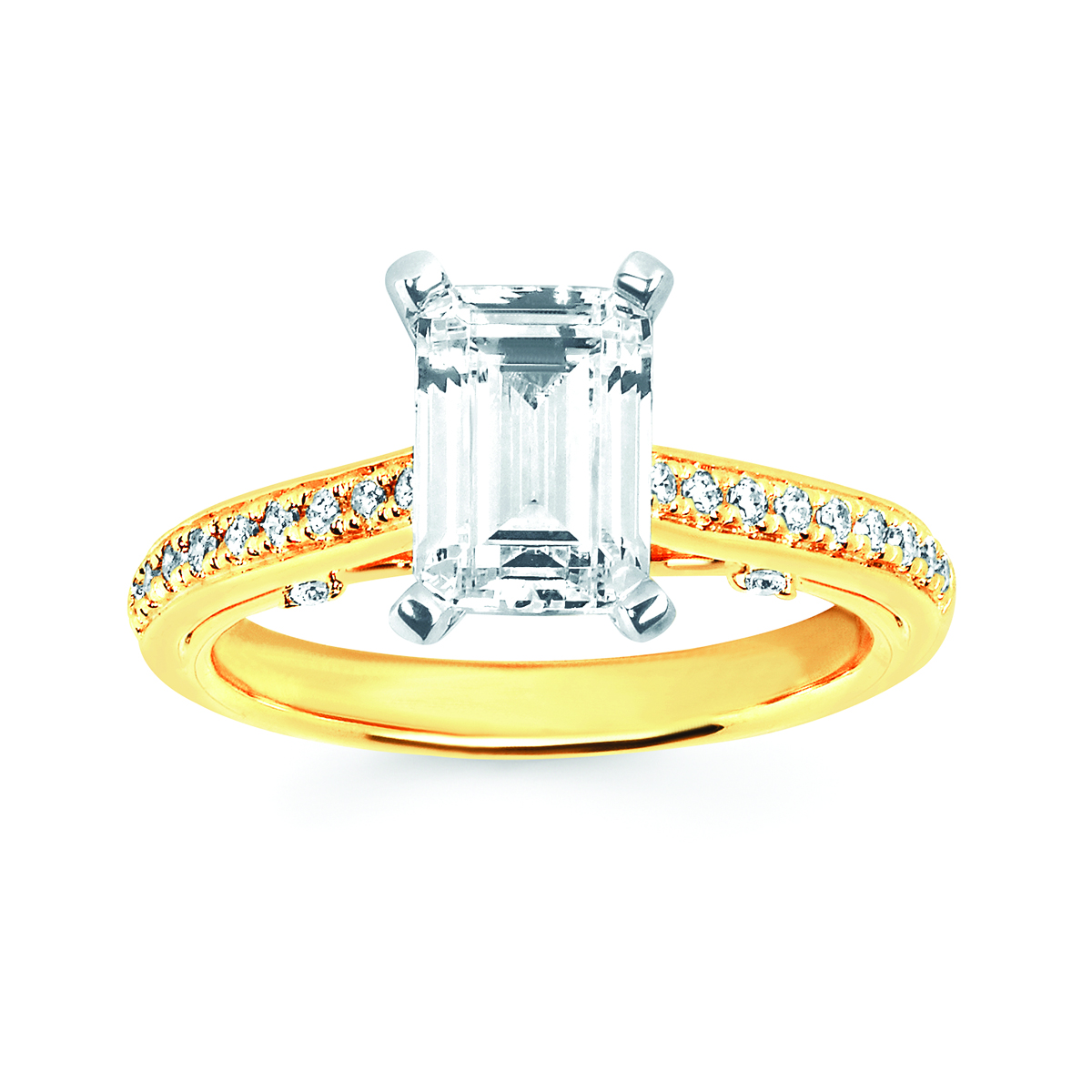 Engagement Ring Forever ElegantĀ® 1/6 Ctw. Diamond Semi Mount shown with 2 Ct. Elongated Radiant Center Diamond in 14K Gold