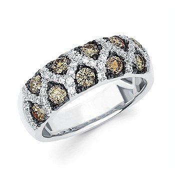 1-1/6 Ctw. Cognac & White Diamond Fashion Leopard Ring In 14K Gold